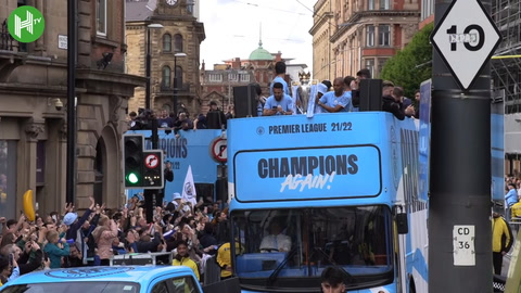 Los festejos del Manchester City en el autobús